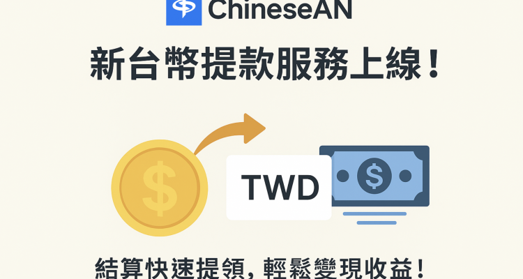 ChineseAN 新台幣提款服務上線:結算快速提領,輕鬆變現收益!